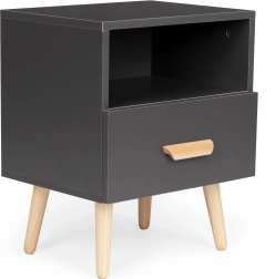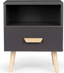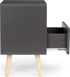 Compartimentarea funcțională, cu un sertar și o poliță deschisă, oferă loc pentru cărți, telefon, ceas deșteptător și mărunțișuri pe care vrei să le ai la îndemână. Suprafețele laminate rezistente se curăță ușor, iar construcția solidă garantează stabilitate de durată.