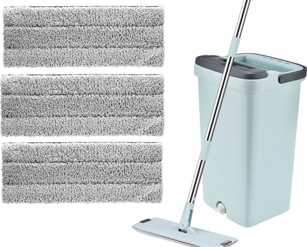 Mopul dispune de un mâner antiderapant și o tijă în trei părți, care se asamblează ușor pentru depozitare practică. Setul include și trei lavete de curățare din microfibră, care absorb eficient mizeria și apa.