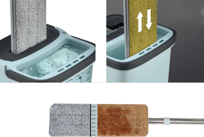 Potrivit pentru curățarea ploițelor, marmurei, ceramicii, lemnului și altor materiale, acest mop permite spălarea, stoarcerea și clătirea ușoară într-un singur pas.