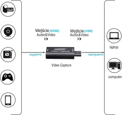 Conectați sursa HDMI și USB la computer – dispozitivul este identificat automat ca „FHD Capture / USB Video”. Funcționează imediat cu OBS, VLC și alte aplicații.