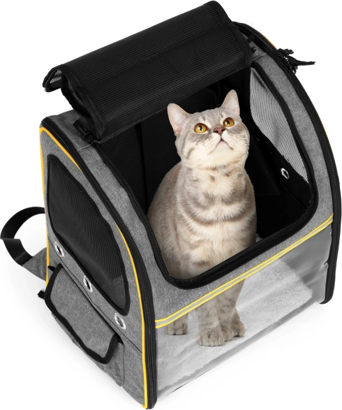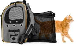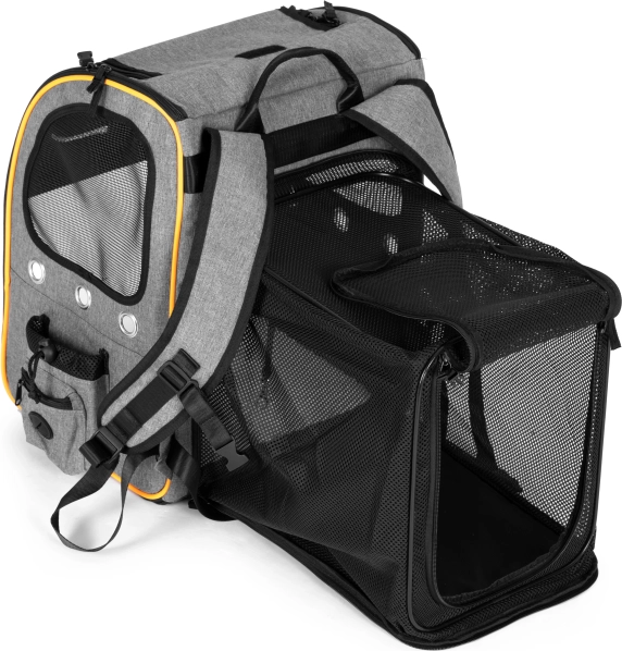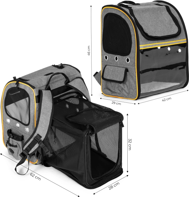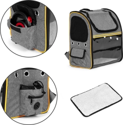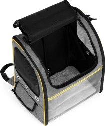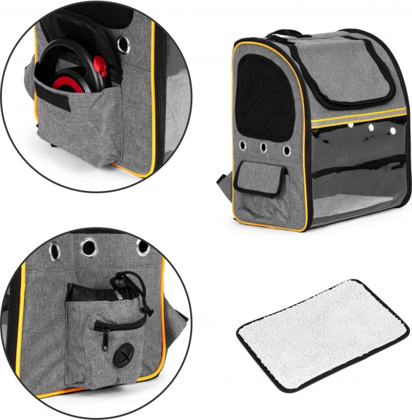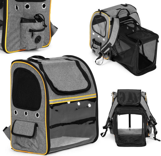 Bucurați-vă de călătorii cu animalul de companie în siguranță și confort. Acest rucsac spațios îmbină o construcție solidă și sigură cu detalii ingenioase pentru confortul dvs. și al animalului. Panoul frontal transparent îi permite companionului să observe împrejurimile, în timp ce panourile din plasă și orificiile de ventilare asigură un flux constant de aer proaspăt.