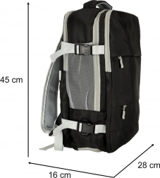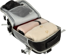 Mare rucsac de călătorie impermeabil, care poate fi folosit pentru purtarea zilnică sau ca bagaj de mână. Are curele de compresie, care permit reducerea volumului rucsacului plin. Datorită numărului mare de buzunare, puteți aranja lucrurile după nevoile dvs., inclusiv un buzunar special pentru încălțăminte. Produsul conține port USB și cablu pentru încărcarea ușoară a dispozitivelor mobile direct din bateria externă din interiorul rucsacului.