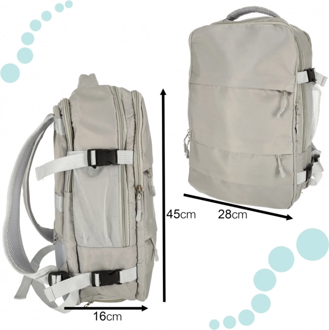 Rucsacul de călătorie mare este proiectat pentru uzul zilnic, precum și pentru călătorii. Poate fi folosit ca bagaj de mână la majoritatea companiilor aeriene. Curele de compresie exterioare permit reducerea volumului rucsacului încărcat. Are mai multe buzunare, inclusiv un buzunar special pentru pantofi, astfel încât puteți depozita fără probleme toate lucrurile necesare. Dispune de un port USB și un cablu USB pentru încărcarea ușoară a telefonului prin intermediul bateriei externe.