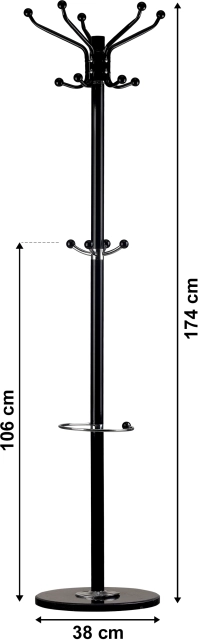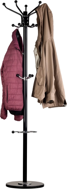 Partea superioară are cinci brațe, pe care pot fi agățate câte două jachete. La jumătatea înălțimii există cârlige suplimentare, potrivite pentru pălării, umbrele sau genți.