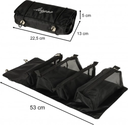 Geanta de voiaj pliabilă Leegoo este însoțitorul perfect pentru călătoriile tale. Cu o capacitate mare și patru compartimente separate, permite împachetarea eficientă a unui volum considerabil de produse. Fiecare compartiment este prevăzut cu fermoar pentru depozitare în siguranță, iar pereții din plasă asigură identificarea ușoară a conținutului.