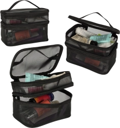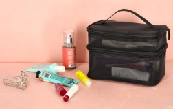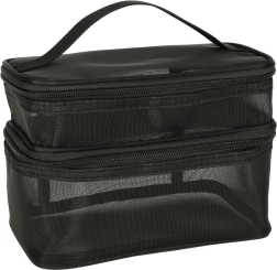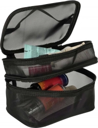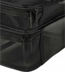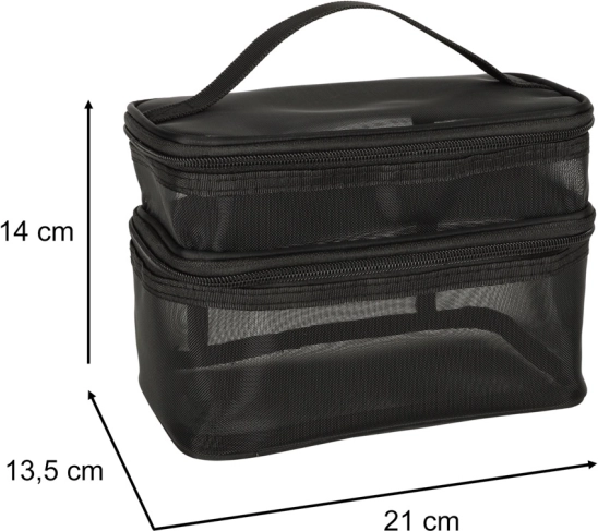 Geanta cosmetică de călătorie este indispensabilă pentru orice drum. Datorită construcției pe două niveluri, permite o organizare clară și depozitarea produselor cosmetice. Închiderea cu fermoar cu dublu sens asigură siguranță și confort în utilizare. Geanta este realizată din material respirabil, care permite găsirea rapidă a produselor depozitate.