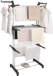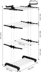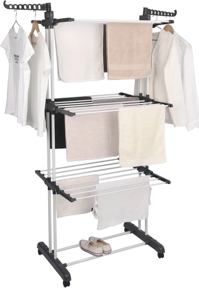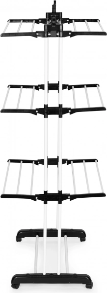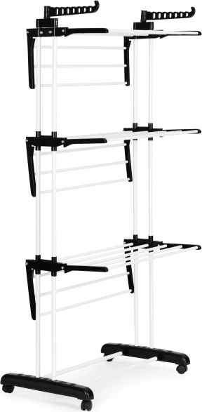 Trei niveluri cu 6 brațe rabatabile și 2 suporturi pentru umerașe găzduiesc o cantitate mare de rufe fără a ocupa loc în cameră.