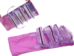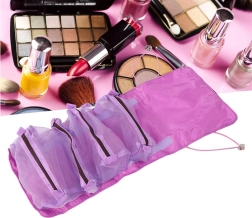 Fără haos în trusa de toaletă. Acest organizator cosmetic rulabil 4 în 1 oferă patru buzunare încăpătoare, transparente, cu fermoar, care pot fi detașate și rearanjate datorită benzii velcro. După împachetare, se strânge cu benzi elastice și rămâne bine fixat.