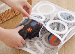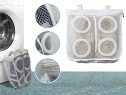 Sacul, de asemenea, previne încâlcirea șireturilor și pierderea pieselor mici de rufe. După spălare îl puteți folosi ca plasă de uscare – este suficient să îl agățați într-un loc bine aerisit pentru a grăbi uscarea încălțămintei. Ușor, compact și ușor de curățat, util în orice gospodărie.