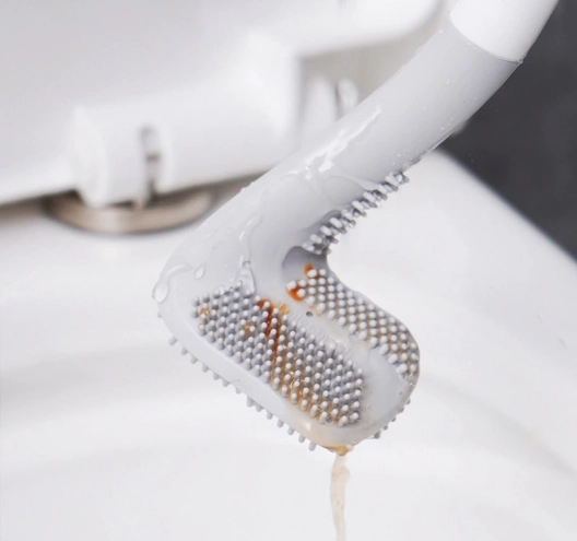 Perii săi flexibili asigură o curățare rapidă și eficientă, fără a deteriora nicio instalație de baie. De asemenea, este igienică - este suficient să o clătești sub apă curgătoare și să o scuturi pentru ca picăturile de apă să se scurgă de pe vârful de silicon.