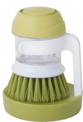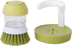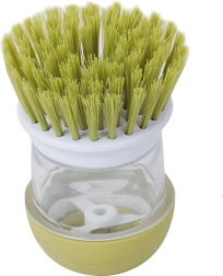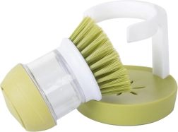 Simplificați spălarea zilnică a vaselor. Peria cu dozator de lichid integrat eliberează detergentul direct în timpul frecării – e suficient să apăsați butonul superior. Forma ergonomică stă bine în mână, iar perii deși și rezistenți fac față oalelor, tigăilor și petelor uscate.