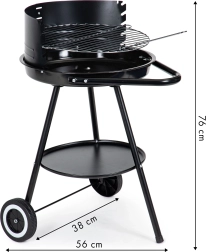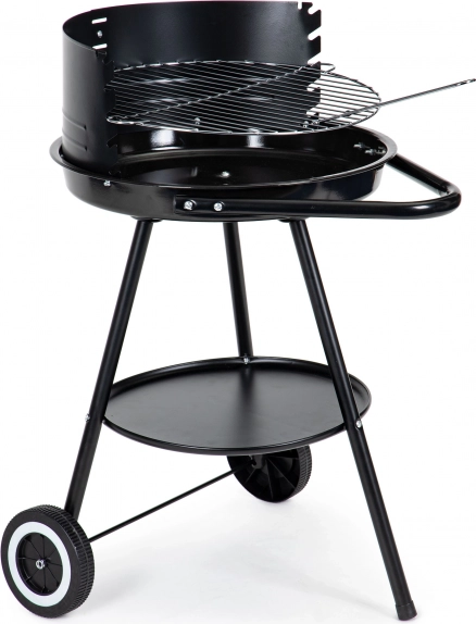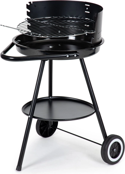 Designul cu roți permite mutarea ușoară și sigură a grătarului, chiar și atunci când este fierbinte. Etajera practică de jos oferă spațiu de depozitare.