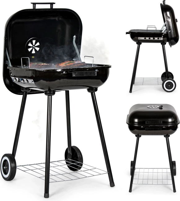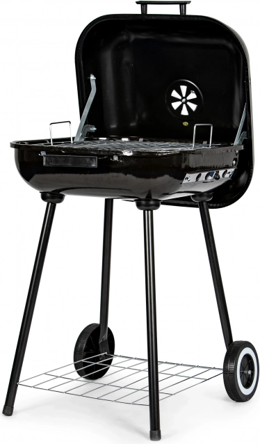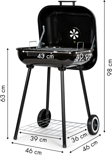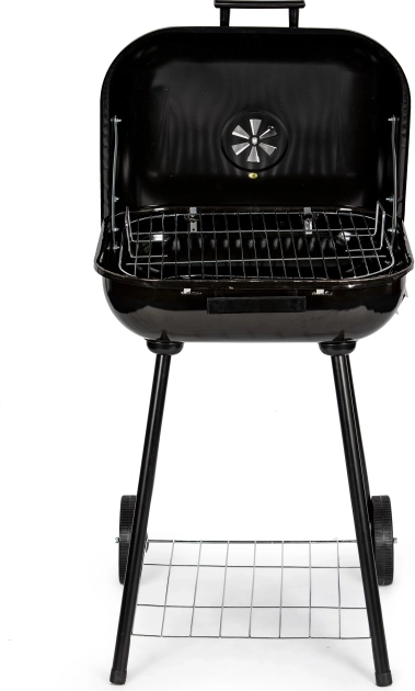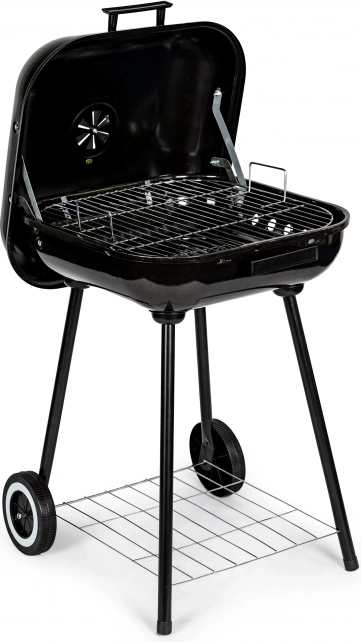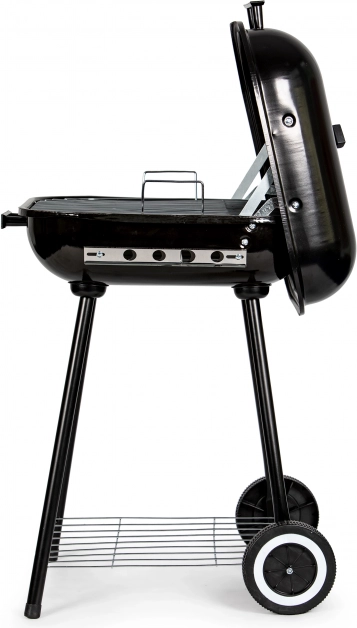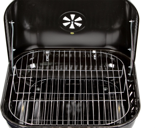 Datorită mânerului și rotițelor, manipularea grătarului este ușoară chiar și la temperaturi mai ridicate. Sub camera de încălzire se află un raft funcțional care permite depozitarea cărbunelui sau altor accesorii de grătar. Orificiile de ventilație suplimentare asigură reglarea corectă a temperaturii și circulației aerului.