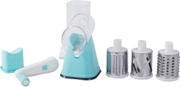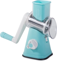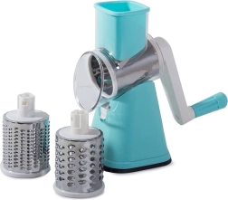 Feliatorul manual rotativ 3‑în‑1 cu trei tamburi interschimbabili ușurează pregătirea meselor în fiecare zi. Datorită ventuzei puternice, este stabil în timpul utilizării, se manevrează ușor cu manivela și permite răzuire fină și grosieră precum și tăiere rapidă în felii a brânzeturilor, legumelor, nucilor sau biscuiților.