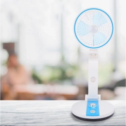 Menține un climat plăcut oriunde. Acest ventilator pliabil fără fir, în elegantul albastru, combină răcire performantă, dar silențioasă cu o lumină LED utilă. Cu reglarea lină a vitezei, adaptezi ușor fluxul de aer la nevoile momentului – de la adiere ușoară la răcorire mai intensă.