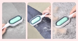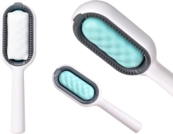 Cealaltă parte a periei, cu dințișori fini, îndepărtează cu ușurință părul și scamele de pe haine, canapele sau covoare, fără a le deteriora.