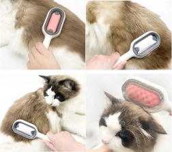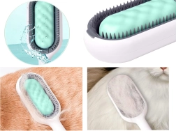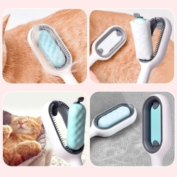 Peria de descurcare din silicon 3 în 1 combină pieptănarea eficientă, spălarea delicată și îndepărtarea părului de pe textile. Pe perna de silicon se poate aplica o lavetă umedă pentru a spăla ușor blana în timpul pieptănării, facilitând colectarea firelor căzute și lăsând blana curată și strălucitoare.