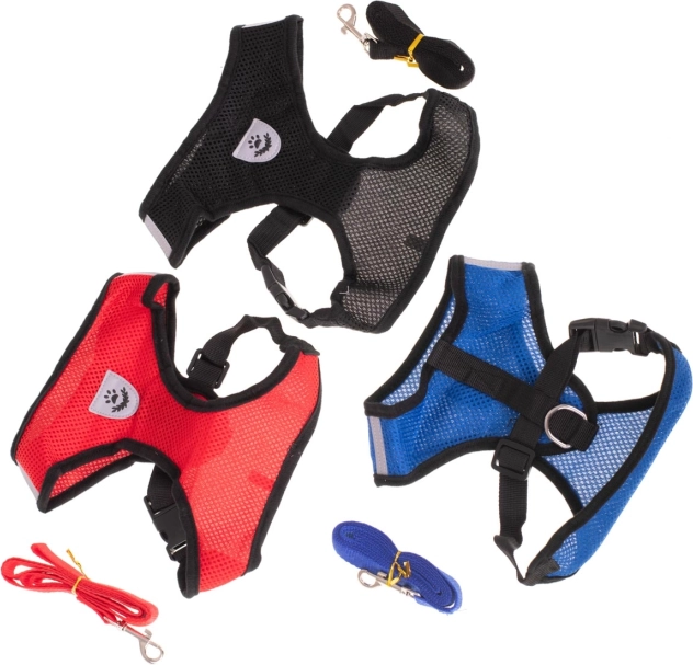 Ham confortabil și ușor pentru câini și pisici, cu lesă, oferă design fără strangulare, plasă respirabilă și elemente reflectorizante pentru plimbări sigure zi și noapte. Datorită cataramei cu eliberare rapidă și curelelor ajustabile, hamul se pune ușor și se potrivește perfect corpului animalului de companie.