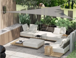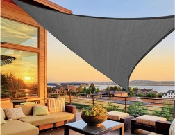 Creați o zonă plăcută de umbră pentru relaxare și întâlniri. Forma triunghiulară a pânzei, în gri modern, se potrivește majorității exterioarelor, iar datorită tratamentului hidrofug și protecției împotriva razelor UV asigură confort chiar și în zilele călduroase. Cusăturile întărite, inelele tip D robuste și colțurile rezistente oferă durabilitate și stabilitate de lungă durată atunci când este tensionată corect.