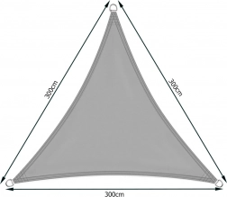 Pânză de umbrire triunghiulară elegantă, cu dimensiunile 3 × 3 × 3 m, care oferă terasei, balconului sau grădinii dumneavoastră umbră fiabilă și confort. Datorită țesăturii din poliester rezistentă, cu tratament hidrofug și protecție UV, oferă protecție eficientă împotriva soarelui, suprafață hidrofugă cu uscare rapidă și colțuri întărite solide cu inele metalice pentru o instalare sigură. În pachet sunt incluse corzi de montaj pentru prindere ușoară.