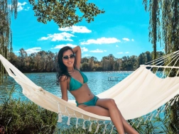 Barele distanțiere din lemn mențin hamacul bine întins, corzile rezistente oferă stabilitate, iar în pachet sunt incluse și șnururi de prindere pentru montaj rapid.