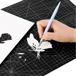 Acest covoraș auto-regenerant în format A3 (30 × 45 cm) este conceput pentru tăierea precisă și sigură a hârtiei, textilelor și foliilor. Structura multistrat din material durabil atenuează pătrunderea lamei și ajută la prelungirea duratei de viață a lamelor, în timp ce suprafața se închide parțial după incizie.