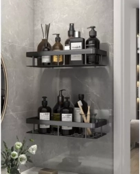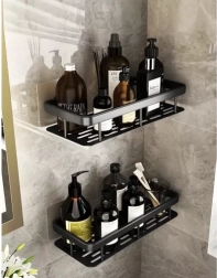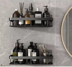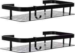 Maximizați spațiul de depozitare în duș și lângă lavoar. Setul conține 2 rafturi spațioase pentru șampoane, balsamuri și geluri, precum și cârlige suplimentare pentru agățarea accesoriilor. Construcția din aluminiu, ușoară dar extrem de durabilă, rezistă la umiditate și coroziune – ideală pentru utilizare direct în cabina de duș.