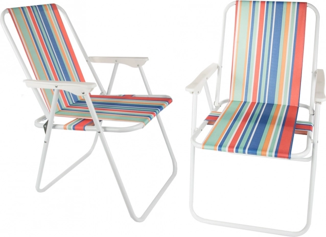 Scaunul se montează fără unelte – este suficient să îl deschideți și șederea comodă, cu brațe, este gata. Aspectul versatil, în dungi, adaugă o atmosferă estivală campingului, pescuitului, picnicului sau relaxării pe balcon.