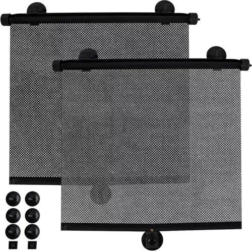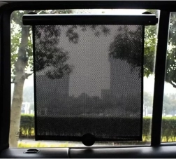 Plasa închisă la culoare, cu textură fină, reduce orbirea și temperatura din interior, făcând călătoria mai confortabilă pentru copii și adulți.