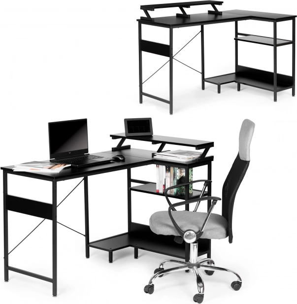 Biroul de colț este multifuncțional și se potrivește foarte bine în diverse încăperi. Poate fi folosit în cameră de studiu, la birou sau într-o cameră dedicată gamerilor ambițioși.