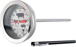 Termometrul include simboluri pentru temperaturi ideale ale diferitelor tipuri de carne și un cadran ușor de citit.