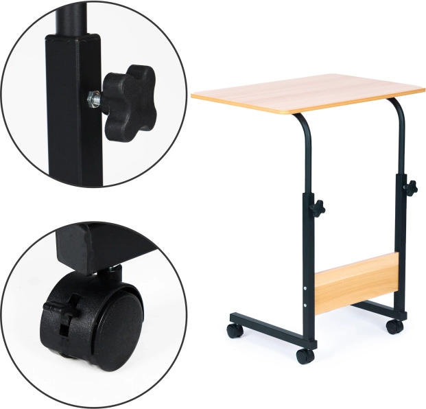 Masa mobilă pentru laptop de la ModernHome oferă confort și flexibilitate de neegalat pentru lucru sau relaxare în fiecare încăpere din casa dvs. Grație rolelor cu blocare, o puteți deplasa cu ușurință și asigura stabilitatea. Structura ajustabilă pe înălțime vă permite să adaptați masa exact conform nevoilor dvs., asigurând confort ergonomic.