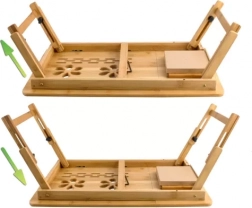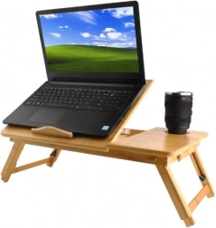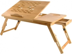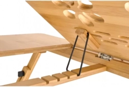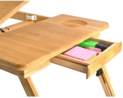 Construcția stabilă din bambus natural este completată de un opritor anti-alunecare pentru utilizare înclinat, sertar integrat pentru creioane, căști sau stick USB și, de asemenea, suport pentru cană la anumite variante. Picioarele pliabile facilitează transportul și depozitarea. Soluție excelentă pentru pat, canapea, dar și pentru tren, autobuz sau avion.