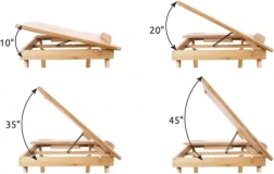 Măsuța din bambus pentru laptop îmbunătățește ergonomia muncii acasă și în deplasare. Blatul ajustabil cu 4 trepte de poziționare ajută la reducerea solicitării spatelui și a coloanei cervicale, în timp ce decupajele de ventilație susțin fluxul de aer și previn supraîncălzirea laptopului – bateria rezistă mai mult, iar dispozitivul funcționează stabil.