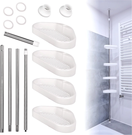 Adaugă un strop de funcționalitate și stil băii tale cu polița de colț pentru baie telescopică. Aceasta este proiectată pentru a oferi suficient spațiu pentru cele mai utilizate produse cosmetice și este ideală pentru organizarea și accesul facil la șampoane, geluri de duș și alte articole esențiale în timpul dușului.