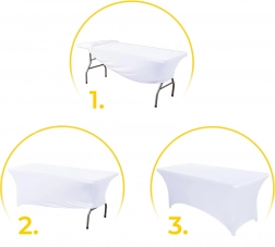 Cu această husă, transformați o masă obișnuită într-o piesă de mobilier elegantă în doar câteva minute. Trebuie doar să așezați materialul pe blatul mesei, să întindeți colțurile și să o fixați la picioare.