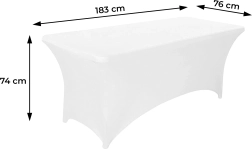 Husa universală pentru masă MultiGarden este proiectată pentru mese cu lungimea de 180 cm și aduce stil evenimentelor dumneavoastră. Datorită materialului său elastic, se montează ușor și rămâne ferm la locul său. Este ideală pentru petreceri de nuntă, catering corporativ sau târguri meșteșugărești.