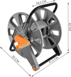 Permite înfășurarea atât a furtunurilor de cauciuc, cât și a celor textile, până la o lungime de 60 m pentru furtun de 1/2" și 50 m pentru furtun de 5/8".