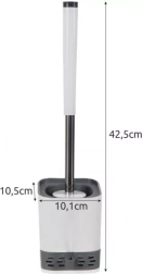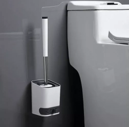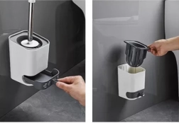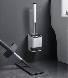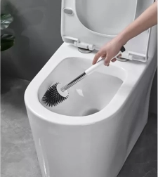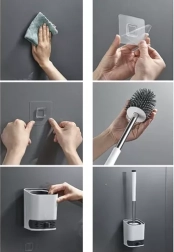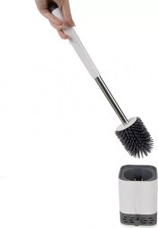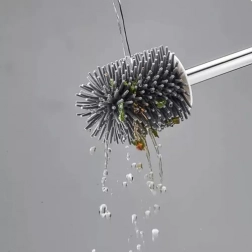Setul elegant pentru baie combină o perie din silicon cu mâner lung din oțel inoxidabil și un suport compact cu ventilație pentru uscare rapidă. Datorită firelor flexibile din TPR, peria ajunge în toate colțurile, sub margine și mai adânc în vas, fără a zgâria suprafața. Suportul poate fi așezat pe podea sau lipit pe perete fără găurire.