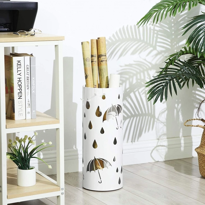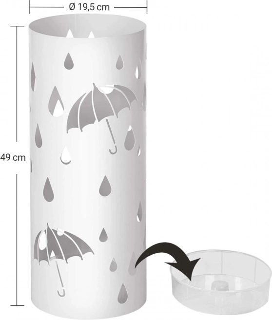 Suportul elegant alb pentru umbrele este un supliment ideal pentru casa dvs. Designul modern și structura metalică deschisă oferă un aspect elegant și atrage atenția fiecărui vizitator. Culoarea albă și tăieturile decorative de umbrele și picături de ploaie completează aspectul fiecărei intrări sau hol.