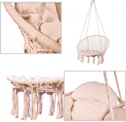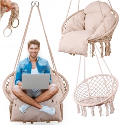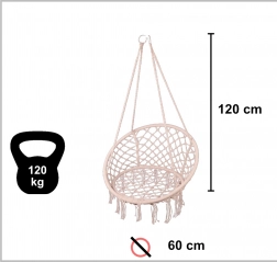 Frânghii rezistente și cadru metalic asigură stabilitate și o capacitate de până la 150 kg, pentru o legănare fără griji, atât la relaxare, cât și la lucru.