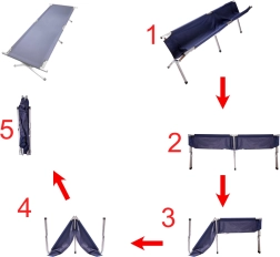 Mecanismul de pliere permite pregătirea patului pentru utilizare imediat – ideal când ajungeți în camping după lăsarea serii.