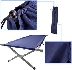 Pat pliant de campanie XXL, durabil, cu cadru din oțel și capacitate de încărcare de până la 150 kg, oferă un somn confortabil la camping, la pescuit sau în grădină. Datorită desfășurării rapide și dimensiunilor compacte după pliere, se transportă ușor în husa de transport. Țesătura rezistentă poliester 600D este rezistentă la abraziune și intemperii.