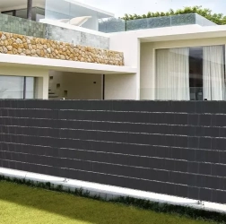 Această bandă de umbrire pentru gard, din PVC rezistent, se remarcă prin gramajul ridicat de 450 g/m², care asigură rezistență, stabilitate dimensională și durabilitate sporită. Datorită stabilizării UV, nu se decolorează, nu crapă și rezistă la umiditate și îngheț – o alegere perfectă pentru utilizare exterioară pe tot parcursul anului. Nuanța antracit oferă gardului și balconului un aspect modern și uniform.