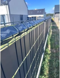 Sporiți intimitatea și reduceți transparența prin gardul tip panou. Banda antracit conferă împrejmuirii un aspect curat, unitar și modern, care se potrivește mediului.
