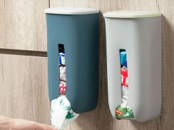 Carcasa subțire, albastră, economisește spațiu și păstrează pungile organizate în bucătărie, baie sau camera tehnică.