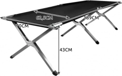 Bucurați-vă de un somn confortabil în natură sau acasă. Patul de camping TRIZAND oferă dimensiuni confortabile de 189 × 70 × 43 cm, potrivite pentru adulți și adolescenți. Datorită înălțimii mărite, dormiți deasupra solului, la uscat și cald, în timp ce structura metalică robustă și țesătura Oxford 600D garantează o durată de viață îndelungată.