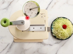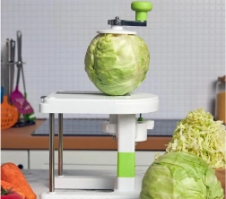 Răzătoarea este concepută pentru a economisi timp și efort la tăierea verzei: este suficient să introduceți varza și să rotiți manivela. Tampoanele antiderapante asigură siguranță în timpul utilizării. Designul elegant se potrivește în orice bucătărie.