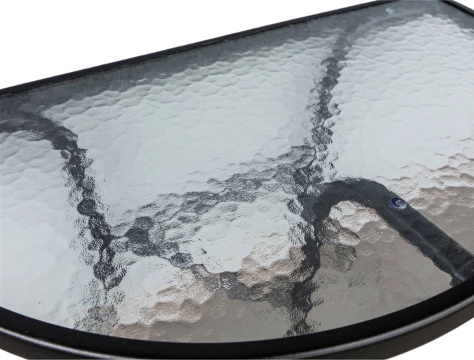 Blatul stabil din sticlă securizată este rezistent la zgârieturi și ușor de curățat. Forma de semilună economisește spațiul prețios de pe balcon.