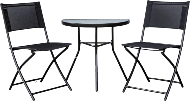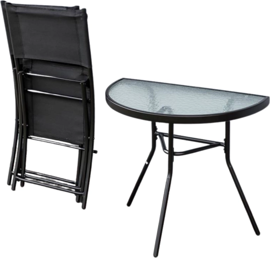Setul MARCO este proiectat pentru spații exterioare mici, unde contează fiecare centimetru. Masa semicirculară cu blat din sticlă securizată este stabilă, ușor de întreținut, iar forma ei permite lipirea de perete pentru economisirea spațiului. Cele două scaune pliabile cu textilen rezistent 2×1 oferă ședere confortabilă și pliere rapidă pentru depozitare ușoară.